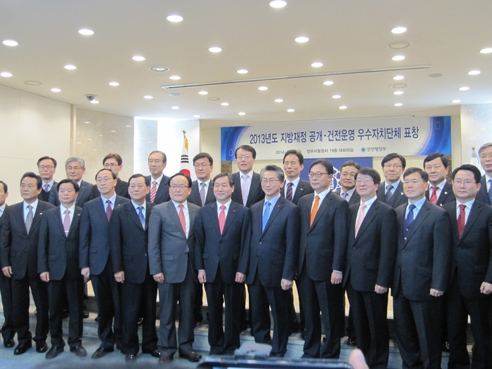 성남시가 24일 정부 서울청사에서 2013년 재정분석 평가결과 우수단체로 선정되어 기관표창을 수상했다.