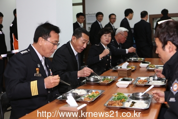 박청웅 소방본부장은 전국적으로 발생하고 있는 조류인플루엔자(AI)로 인하여 피해를 입고 있는 닭.오리 사육 농가의 시름을 함께하기 위해 구내식당에서 오리고기로 직원들과 훈훈한 식사 시간을 가졌다.