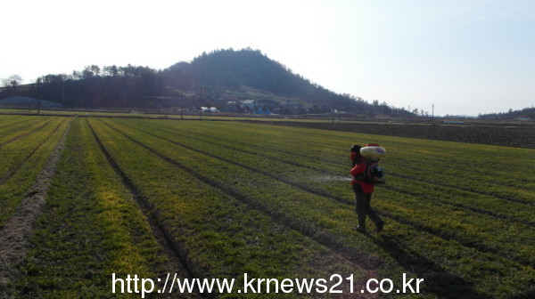 겨울철에 자라는 월동작물인 마늘, 양파, 맥류의 웃거름 주는 시기는 맥류의 경우 2월 상중순, 마늘, 양파는 2월 중하순으로 알맞은 양의 비료를 주어 생육을 촉진시켜 고품질을 생산할 수 있다.
