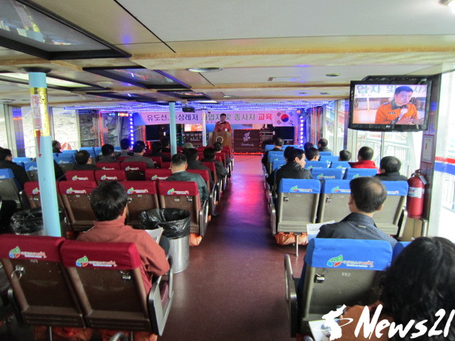 충북 충주시가 관내 유도선과 수상레져 사업자 및 종사자 50여명을 대상으로 ‘유도선 안전교육’을 25일 충주호관광선 충주선착장(청풍1호 객실내)에서 실시했다.