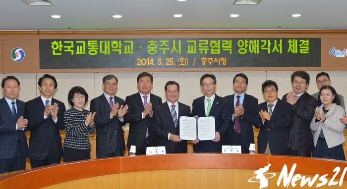 시는 한국교통대학교와 실무형 지역인재 양성과 품격 높은 미래자족도시 충주 건설을 위해 상호교류와 협력이 필요함을 인식하고 공동발전을 위한 교류협력 양해각서를 체결했다고 밝혔다.