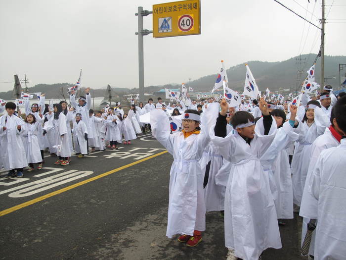 | ▲ 제7회 서천마산신장 3·1운동 재연 및 기념행사에 참여한 마산초 학생들 모습 © 나승철 | |