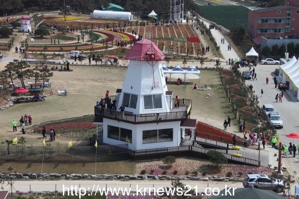 튤립축제장에는 실제 살아있는 듯한 생동감 넘치는 실측사이즈의 마(馬)상 조형물, 바람에 흩날리는 ‘깃발의 거리’, 튤립꽃&나비 조형물, 풍차전망대, 튤립파라솔, 대형전망대, 유리튤립동산 등 각종 조형물들이 관람객들의 눈을 즐겁게 해주며