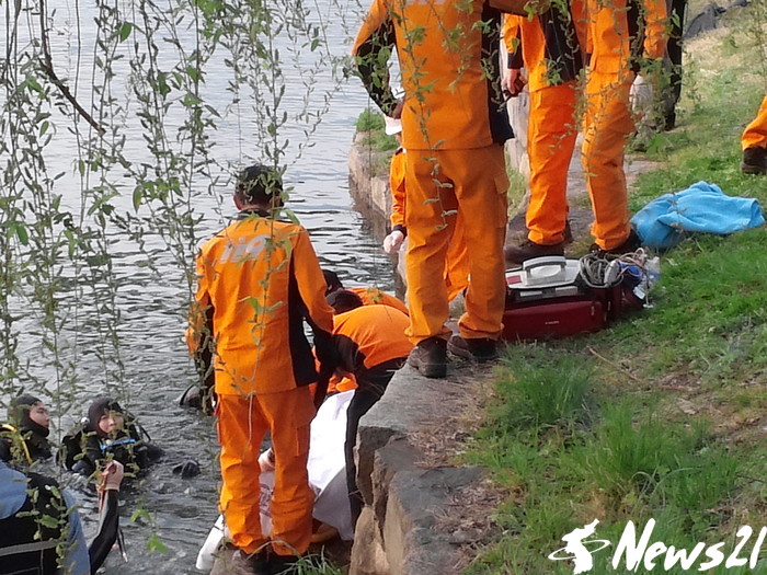 제천소방서는 긴급 출동한 119·해병대전우해  잠수부 등을 동원 수색작업을 벌여 저수지 바닥에서 숨진 홍씨의 시신을 발견했다.