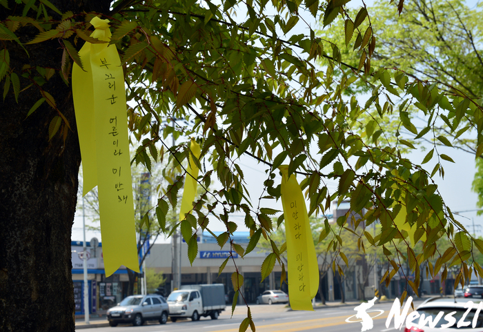 이 리본 중 2개는 ‘부끄러운 어른이라 미안해’ ‘미안해 미안해’라고 작성되어 간절한 소망과 더불어 다 같은 국민으로서 죄스러움을 담고 있다.