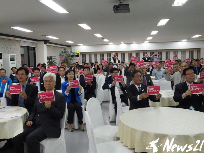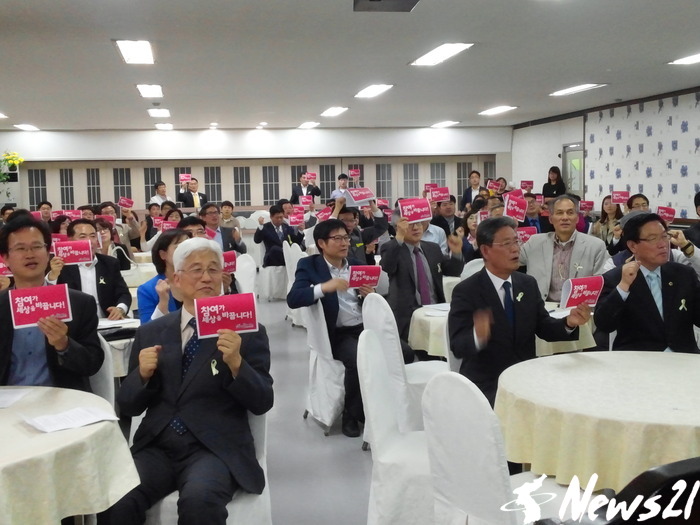 | ▲ 충북참여연대제천지부 창립총회를 마치고 화이팅을 외치고 있다. © 남기봉=기자 | |