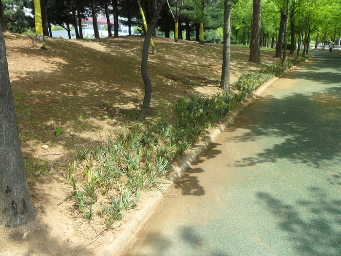 이곳은 녹지공간을 둔덕으로 만들어 나무를 심었는데 나무가 울창하게 자라면서 그늘이 져 잔디가 고사한 곳이 많다. 잔디가 없는 곳은 여름철에 많은 비가 내릴 때마다 토사가 흘러내려 통행에 불편을 주고 있다.