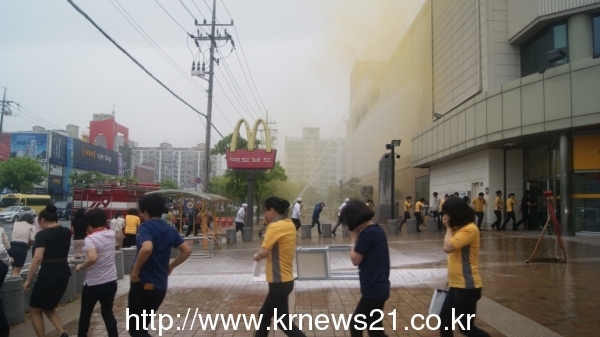 목포소방서(서장 차덕운)는 19일 오전 9시 30분 이마트 목포점 1층 식당에서 화재가 발생한 상황을 가정하여 합동소방훈련을 실시하였다. 이번 소방훈련은 세월호 참사와 관련하여 안전에 대한 의식의 변화가 절실히 요구되는 시점에서 △소방차 도착 전 자위소방대의 화재 발생 사실 전파와 119신고 △소화기와 옥내소화전을 활용한 초기진화 △환자이송 등 초기대응능력 점검 △신속한 대피훈련으로 인적ㆍ물적 피해 최소화 등 종합적인 훈련을 몸소 체험함으로써 유사시 능동적으로 대처할 수 있는 자체소방능력 배양 및 현장대응 능력에 많은 향상을 가져오는 계기가 됐다. 이번 훈련을 지휘한 장경숙 현장대응단장은“이번 소방훈련을 통해 관계자들이 화재에 대한 경각심을 고취하는 소중한 계기가 되길 바란다.”며 “건물 내 자위소방대의 역할이 중요한 만큼 지속적인 교육·훈련을 통해 대응능력을 향상시켜야 한다.”고 당부했다.