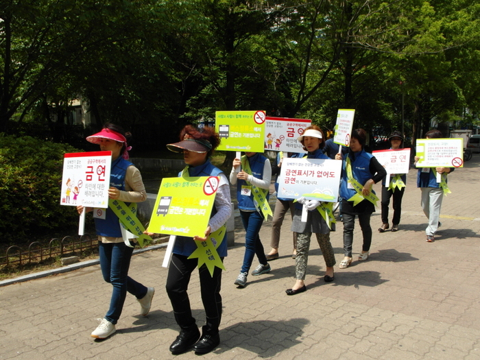 이날 일산서구보건소 금연자원봉사자 ‘금연바라기’ 회원 8명과 함께 주엽역 광장부터 후동공원, 문화공원, 강선공원, 주엽공원 순으로 2시간동안 어깨띠를 착용하고 금연피켓을 들고 가두캠페인을 실시했다.