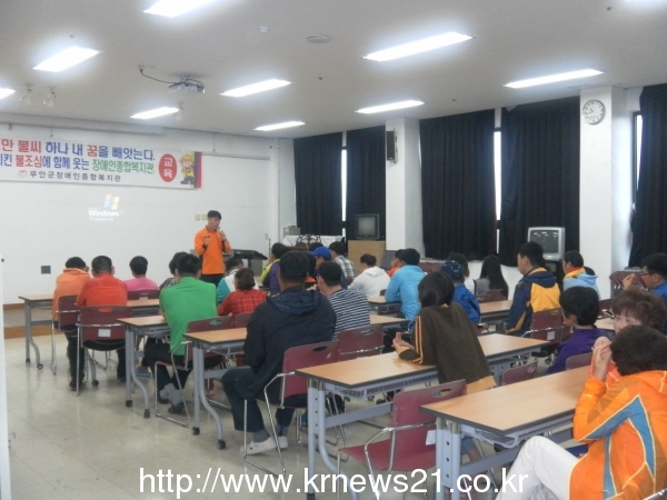 목포소방서(서장 차덕운) 무안119안전센터는 22일 무안군 장애인 복지관을 대상으로 화재로 인한 초기진압능력 함양과 안전한 대피로 인명피해 저감을 위해 소방안전교육을 실시하였다.