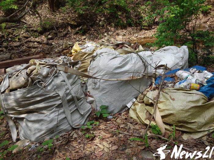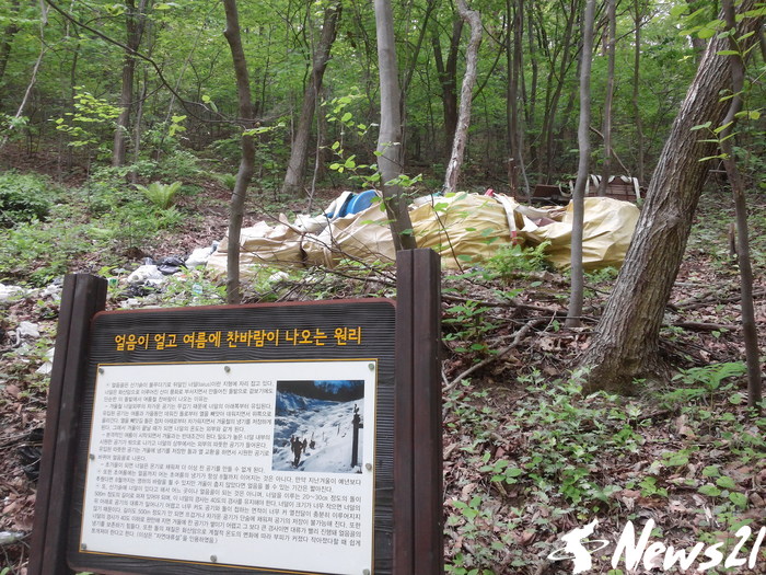 제천 금수산 얼음골 등산로 남몰래 버려진 양심