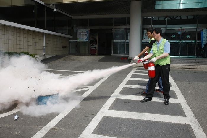 | ▲ 민간 조직 소방대원들이 소화기로 초기화재 진압하고 있다. © 이정수 |