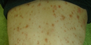 어느 날 갑자기 배나 등에 붉은 반점이 생기더니, 팔 다리로 분홍색의 인설이 있는 반점이 퍼진다면 “장미색 비강진”을 의심해 보아야 한다.