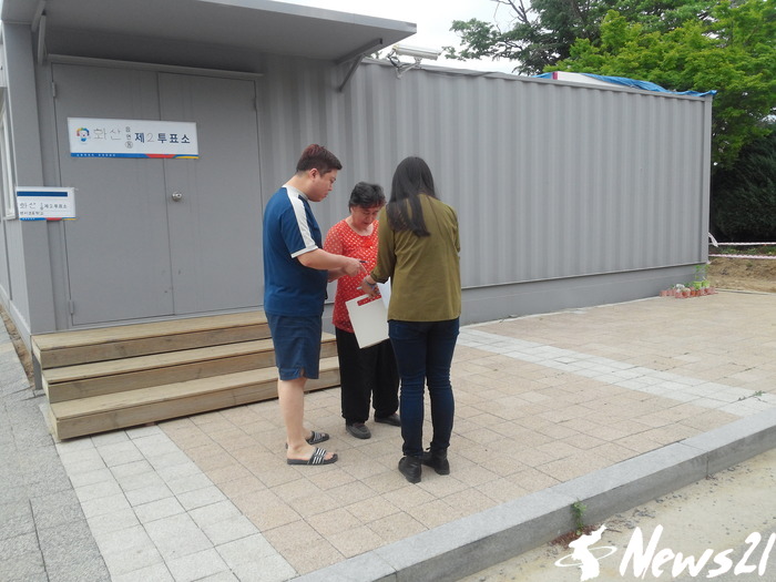▲   6·4 선거 하루전날 KBS 가상 출구 조사 유출 파문 에도 불구 하고 아르바이트 학생들이 유권자들로 부터 출구 조사를 하고 있다.  © 남기봉=기자