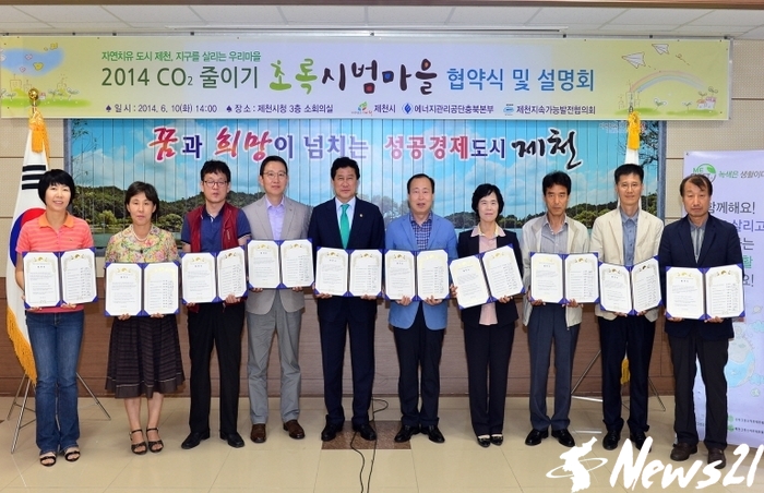 충북 제천지속가능발전협의회(회장 박종철)와 초록시범마을이 6월10일 ‘2014년 CO2 줄이기 초록시범마을’ 협약식을 가졌다.