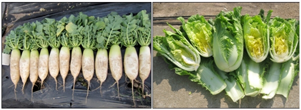 배추는 기능성 향상을 위해 속잎의 색이 노란 배추 품종과 더위에 잘 견딜 수 있도록 익는 시기가 빠르고 구가 작은 품종을 개발했다.
