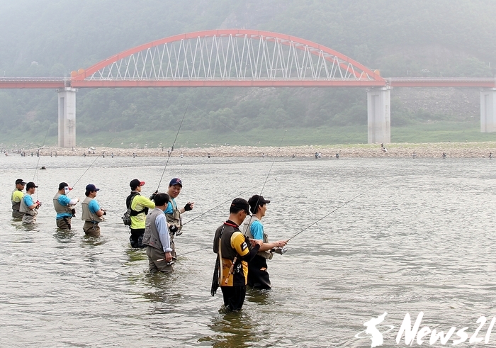| ▲ 충북 단양군 남한강 일원에서 열린 지난해 전국쏘가리 루어낚시대회 모습. news21© 남기봉=기자 | |