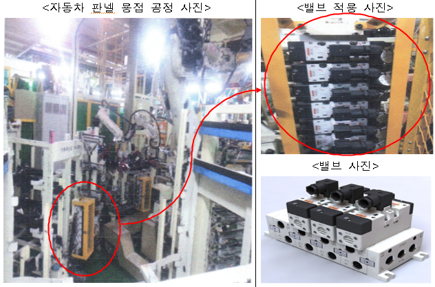 조사대상물품인 공기압 전송용 밸브는 자동차, 전자, 반도체 설비 및 일반 산업용 기계분야의 공장 자동화용 설비 또는 라인 등에 다양한 용도로 사용되는 기계 요소 장치로, 압축공기를 이용, 기계적인 운동을 발생시키는 공기압 시스템에서 실린더에 공기압을 공급․차단하거나 배출함으로 실린더를 작동시키는 방향제어기기로서 용접용로봇 등 산업용 자동화기기에 사용되는 핵심 부품이다.