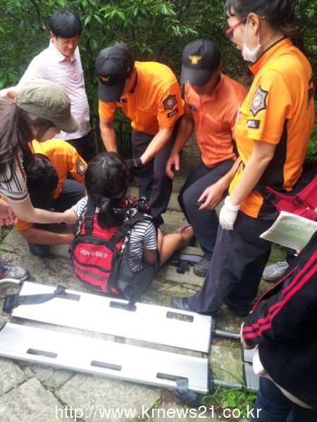 이날 응급환자 김모(15-여)학생 1명은 유달산 체험학습을 마치고 정상에서 내려 오던 중 심한 복통으로 고통스러워하는 상황으로 호남119구급대에서 응급처치를 실시 한 후 119구조대 산악용 들것으로 안전하게 구급차로 이동, 목포한국병원으로 긴급 이송했다.