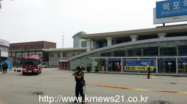 목포소방서(서장 차덕운)는 지난 4일 호남동에 위치한 목포역광장에서 가상 폭발물 진압 대테러 종합 모의훈련을 목포경찰서와 합동으로 실시했다.