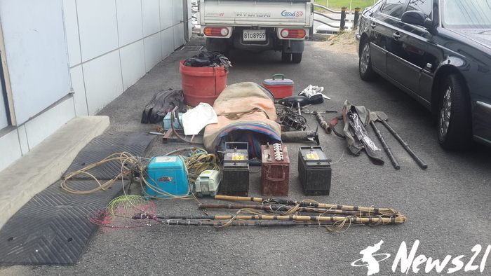 또한 불법 어획물과 어구류는 현장에서 전량 몰수해 재발요인을 제거하고 있으며, 지난 5월부터 배터리, 각망, 고무보트 등 불법어구 4건을 수거했다.