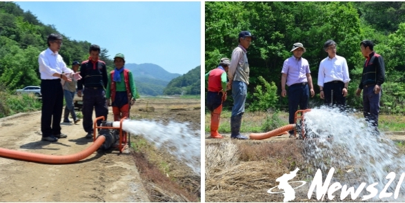 이에 따라 시는 가뭄대책비상상황실을 중심으로 차질없는 영농을 위해 먼저 가뭄이 심한 지역에 들샘파기를 추진하는 한편, 소형관정과 대형관정을 이용한 관수 실시와 각 읍면동에 보유 중인 양수기와 스프링쿨러를 전면 가동하는 필요인력과 장비를 투입하고 있으며 가뭄이 장기화 될 경우 예비비를 투입하기로 했다.