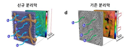 울산과학기술대학교 이상영 교수팀이 주도하고, LG화학 배터리연구소 김종훈 박사팀이 참여한 연구팀은 미래창조과학부 ‘기후변화대응기술개발사업’ 등에서 지원받아 규칙적인 입자 배열을 특징으로 하는 오팔 보석 구조와 정반대 형태의 역 오팔 구조를 갖는 신개념 분리막을 개발하였다. 나노미터 크기의 기공들이 균일하게 분포된 다공성 구조의 특징으로 인해 리튬이온 전달 특성 및 내열성을 크게 향상시킬 수 있었다.