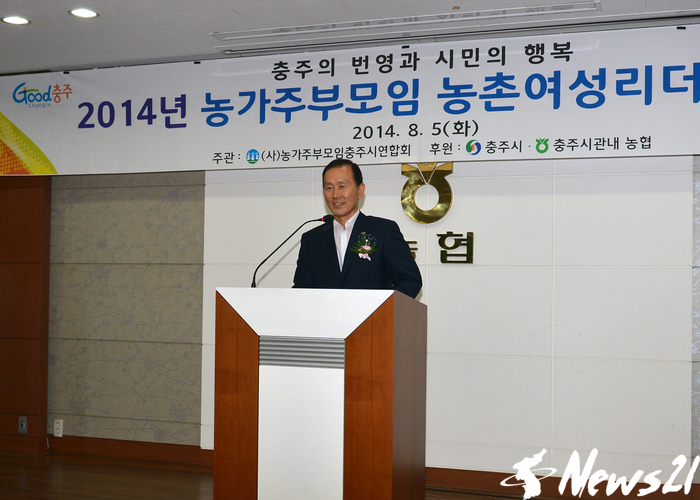 ▲5일 오전 10시부터 (사)농가주부모임충주시연합회(회장 여은숙) 주최로 충주농협 3층 회의실에서 열린 농촌여성 리더십 교육에 참석한 김광중 충주시부시장이 농가주부모임 회원들을 격려하며 역량강화를 통한 농촌생활의 활력소 역할을 당부했다. © 남기봉=기자