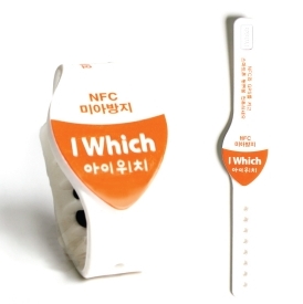 ㈜키즈엠에서 자체적으로 개발해낸 NFC 미아방지 서비스 ‘아이위치(i-Which)’는 미아 발견자가 NFC를 켠 상태로 ‘아이위치(i-Which)’ 팬던트에 스마트폰 뒷면을 접촉하면 아이의 위치가 부모님에게 전송되는 방식을 지녔다.