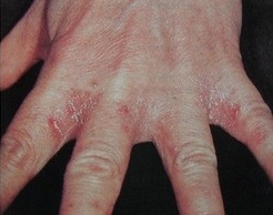 한포진은 손,발의 피부에 투명하고 작은 물집이 무리지어 생기는 비염증성 수포성 질환이다.