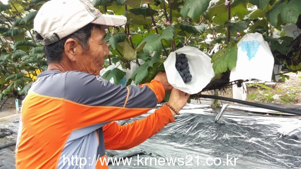 신안포도작목반 박성환 대표는 재작년 태풍 ‘볼라벤’의 피해로 작년 재배농가들이 수확량 감소 등으로 많은 어려움을 겪었으나, 금년 포도는 알도 굵고 당도도 높으며, 수확량은 평년보다 많을 것으로 예측하고 도시 근교 농업의 맛을 보고 있다고 말했다.