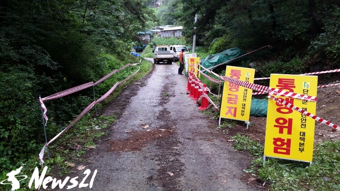 단양군은 추가로 발생할 수 있는 안전사고를 막기 위해 차단안전띠와 안전봉 12개, 입간판 4개 등을 세웠다.