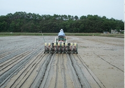 무논점파는 파종기를 이용해 물을 채웠다 뺀 논에 싹을 틔운 볍씨를 6립 정도씩 모아 뿌리는 방법이다.