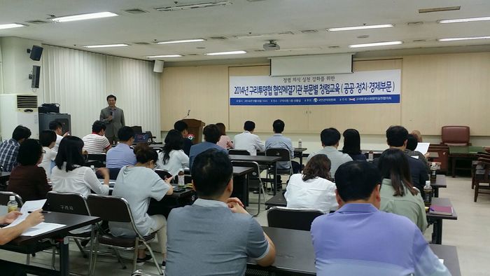 구리투명사회협약실천협의회(위원장 임흥빈)는 국민권익위원회 민간공모사업의 일환으로 구리지역 7개 부문, 53개 협약체결기관에 대한 청렴교육을 3차에 걸쳐 부문별로 진행하는 중이다.