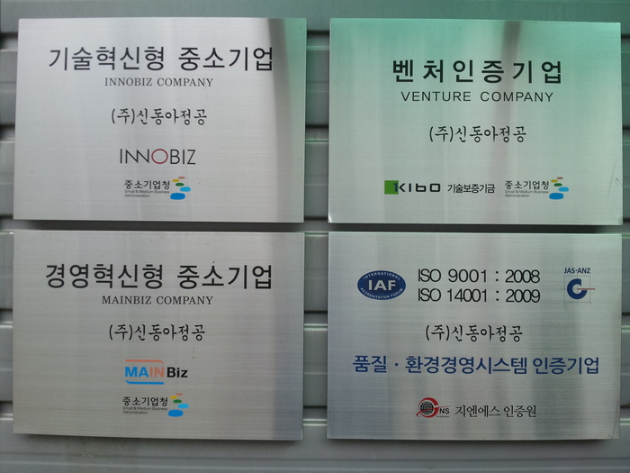 그러면서 "신동아정공의 주력 사업인 볼트의 경우에는 기초산업으로서 전반적인 산업의 초석이 되는 제품으로 안정적인 품질의 확보가 매우 중요 하다"고 설명하며 "이러한 중요점을 인식하여 이노비즈, 메인비즈, 벤처인증, IOS9001품질인증, IOS14001환경인증 및 품질관리 강화를 통해 지속적인 안정화를 이루고있다"고 소개 했다.