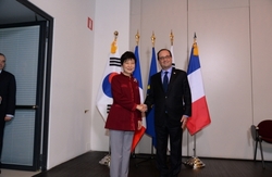 박근혜 대통령은 '제10차 ASEM 정상회의' 참석 계기로 16일 오후 올랑드 프랑스 대통령과 정상회담을 갖고, 지난해 11월 양국 정상회담 후속조치, 양국간 실질 협력방안, 지역 및 국제 정세 등을 협의했다고 17일 청와대는 밝혔다.
