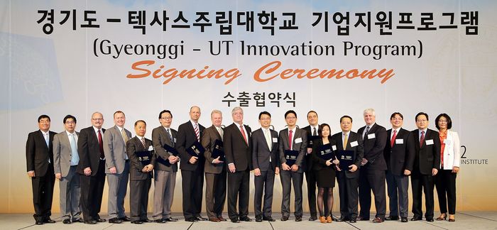 남경필 경기도지사와 최태광 광테크노마그네트(이하 KTM)와 숀D. 카터(Sean D. Cater) NASA 신사업 개발본부장은 20일 오전 10시 30분 수원 라마다호텔에서 이같은 내용을 담은 2014 경기도-UT 지원프로 그램 수출 협약식을 가졌다.