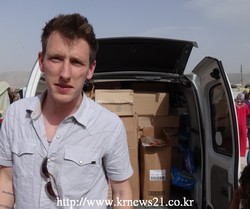 2014년 10월 4일, 2012년 말부터 2013년 가을 즈음에 시리아 국경 어딘가에서 구호단체 SERA(Special Emergency Response and Assistance)의 물품을 난민에게 전달하던 피터 캐시그의 사진.