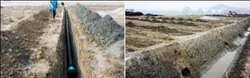 이번에 개발한 기술은 간척지 밭 지하에 60cm 깊이, 5m 간격으로 배수관을 설치하는 것이다.