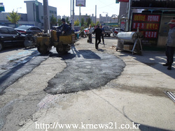 시는 차량의 안전한 운행을 위한 도로포장 파괴부분의 보수 및 균열부 처리, 노견 및 비탈면 정리 등을 중점 정비하기 위해 시내 일원 아스콘 응급 복구를 실시한다.