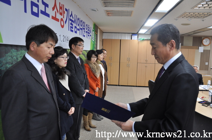 전라남도소방본부(본부장 박청웅)는 21일 오전 도청 재난종합상황실에서 새로 위촉된 소방기술심의 위원 9명에게 위촉장을 전수하고 앞으로의 운영 활성화를 위한 간담회를 가졌다.