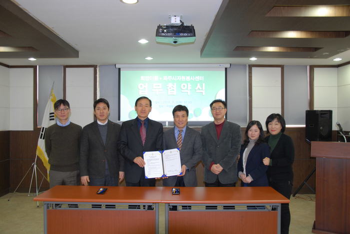 (사)파주시자원봉사센터(이사장 이재홍)는 지난 2월 3일 희망이음(대표 현재익)과 복지사각지대에 놓여있는 저소득 가정에 교육지원, 재능기부 및 물품후원 등이 원활하게 추진될 수 있도록 상호 업무 협약을 체결했다.