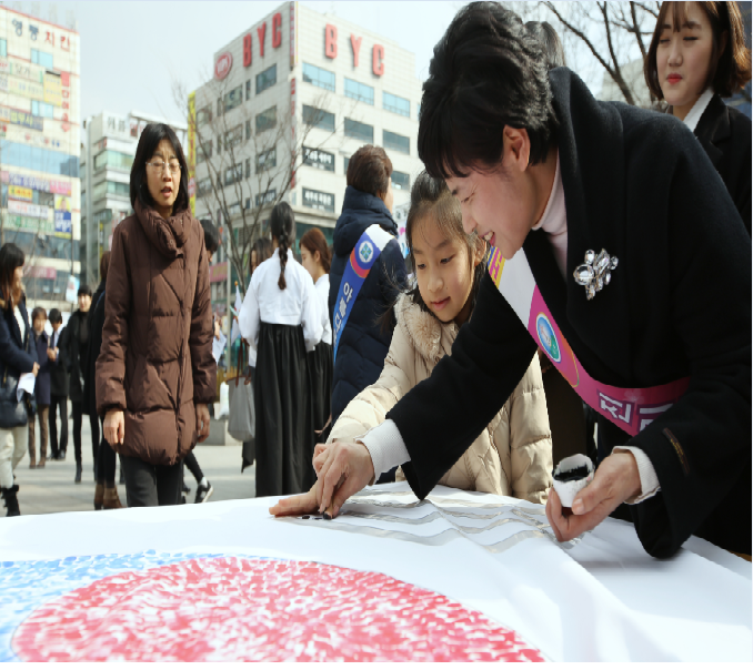 이번 3.1절을 맞아 우리나라의 상징인 태극기를 알리고 나라 사랑을 위한 마음으로 태극기 나눔행사 및 공연을 야탑광장에서 시민 500여 명과 함께 열었다.