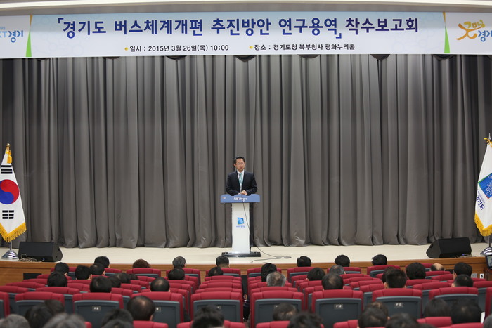 경기도는 26일 북부청사 평화누리홀에서 버스체계 개편 추진방안 연구용역 착수보고회를 개최했다.
