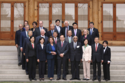 정의화 국회의장은 지난 4.2(목) 오후 12시 국회접견실에서 낸시 펠로시 미국 하원 민주당 원내대표를 비롯한 미 하원의원단과 환담을 나누고 낸시 펠로시 원내대표와 찰스 랭글 의원에게 감사패를 전달했다.