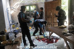 태국 남부 지방 수키린에서 화재로 인해 4명이 숨져 경찰들이 현장 검사를 하고 있다.