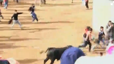 페루 서부인 우앙카벨리카에서 투우 경기가 열리는 가운데 황소가 군중 속으로 달려들었고 황소 위에 타고 있던 한 남성이 낙하해 3명의 부상자가 발생했다.