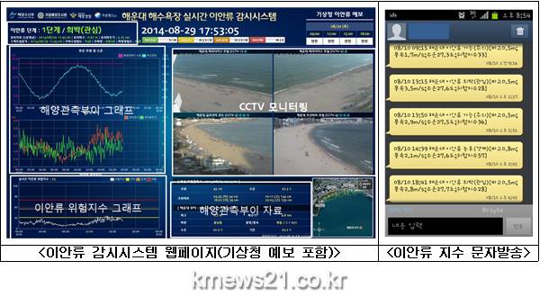 이안류 감시시스템은 해수욕장 앞바다에 설치한 파고계로 관측한 파도의 특성(파고, 주기, 파향 등)을 분석해 위험지수를 산정하고 이를 관심(희박), 주의(가능), 경계(농후), 위험(대피) 4단계로 나눠 제공한다.