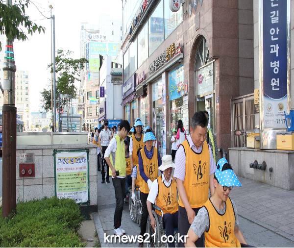 이번 장애활동 체험은 부평구청과 부평장애인종합복지관 40여명의 시민이 참석하여, 힐체어와 안대를 이용한 1.8km 보도와 힝단보도를 진행하며 다리가 불편한 장애인과 시각장애인의 고충 및 보행환경을 느낄 수 있는 시간을 가졌다.