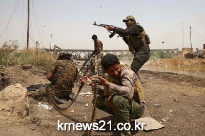 ▲ 이라크에서 시아파 민병대원들이 IS 격퇴 작전을 벌이고 있다. ⓒAFP이라크 수도 바그다드에서 북부로 70km 떨어진 사예드 가리브 지역에서 이라크 친정부 시아파 민병대원들이 이슬람국가 IS와의 격퇴 작전을 벌이고 있다.